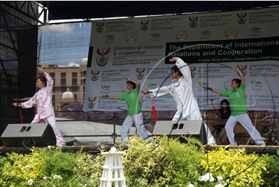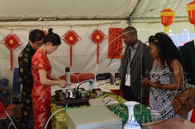 太极、书法、古筝、茶艺等中华传统文化吸引来宾驻足流连。品茶、描红、学古筝、练太极,很多南非观众在这里第一次拥有了“中国名”,第一次亲手触摸“真实的中国”。我馆组织的太极、古筝联袂表演登上使团节主表演台,赢得阵阵热烈掌声。中国特色美食也得到来宾的交口称赞。