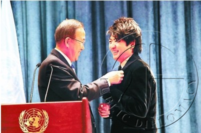 联合国秘书长潘基文为郎朗佩戴勋章
