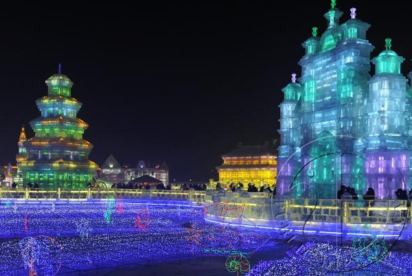 1月5日,第三十届中国·哈尔滨国际冰雪节在哈尔滨冰雪大世界启幕。本届冰雪节有13个国家和地区参加的冰雪动漫世博会、10个国家参加的国际组合冰大赛、朝鲜平壤国家冰上杂技艺术团助阵的大型冰秀演出等众多国际特色鲜明的冰雪活动。图为冰雪大世界里的漂亮冰灯景观。(中新社)