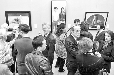 3月18日,观众在法国巴黎参观“中法青年油画家艺术交流展”预展。“追求卓越——2014中法青年油画家艺术交流展”于3月19日至4月5日在位于塞纳河畔的巴黎中国文化中心举行。此次画展将为中法两国青年艺术家搭建相互交流和共同发展的平台。(中国文化传媒网)