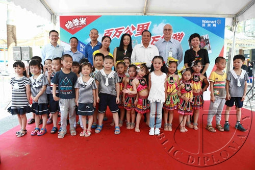 中国扶贫基金会副会长陈开枝、中国扶贫基金会秘书长助理秦伟、沃尔玛中国公司事务高级副总裁博睿(Raymond Bracy)、沃尔玛中国大卖场采购部副总裁李岩岩、玛氏巧克力中国公司事务副总裁滕刚出席了当天的启动仪式并讲话。深圳市关爱办主任助理田光、沃尔玛深圳蛇口店员工志愿者、当地社区顾客代表及学校师生代表等30余人也来到了活动现场,参与了签署志愿承诺、亲子益走、为贫困地区孩子邮递爱心等丰富多彩的互动项目。