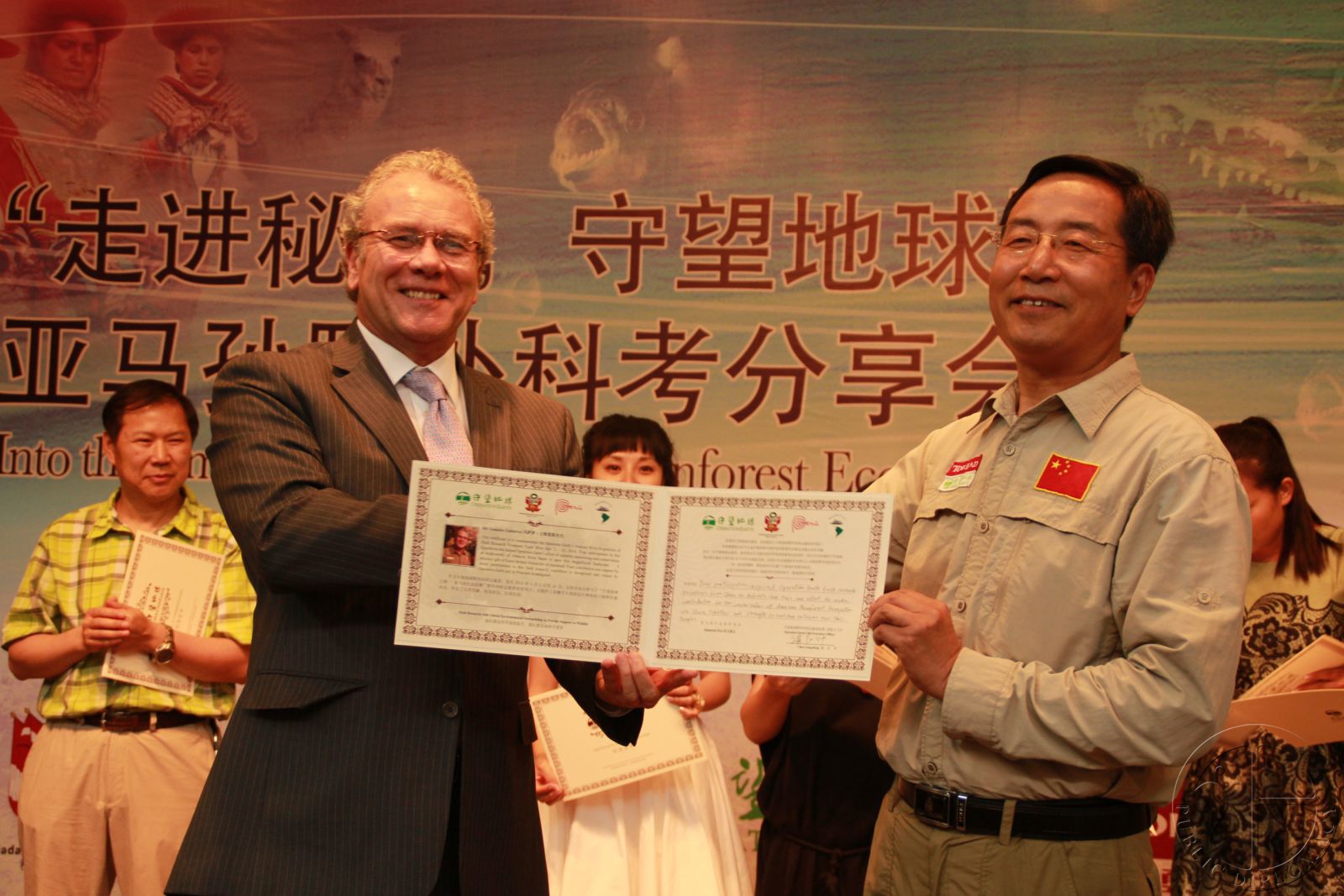 守望地球CEO谌良仲先生为秘鲁大使颁发亚马孙科考证书