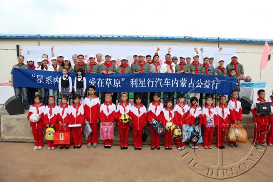 来自中国汽车流通协会、梅赛德斯-奔驰、内蒙古青少年发展基金会等合作伙伴的嘉宾,与媒体朋友及爱心车主们一起,为孩子们发放了书包、文体用品等实用的爱心礼物,并分别组队与孩子们展开趣味接力跑,积极交流和互动。孩子们犹如一群雀跃的小喜鹊,在扩建的校园中自由地奔跑着、笑闹着,与大朋友们一同放飞梦想,幸福的小脸上溢满欢乐。(新浪公益)