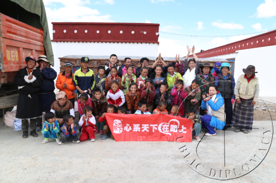 “心系天下在路上”公益团队由中国电信与三星共同组建,“心系天下”以“传承、创新、尊贵、思仁”八字为核心品牌理念,“心系天下在路上”正是秉承和践行“思仁”这一公益理念,始终行走在公益的道路上,力求把温暖送到最需要帮助的人身边。在2014年,心系天下在路上公益团队先后完成许多站的公益活动,探望红色根据地阜平“养老院”,向感动吉林王仁老师献爱心,重走江西圆老人北京梦,救助内蒙武川特殊教育学校等。虽然以前心系天下在路上也救助过学校,但不远千里爱行西藏,克服高原反应,一连救助多所贫困学校,规模庞大、性质特殊的公益行动还是第一次。正因为此次公益活动的特殊性,公益团队格外珍惜这次公益救助的机会,都希望把救助尼玛地区贫困学校公益活动做到十全十美。