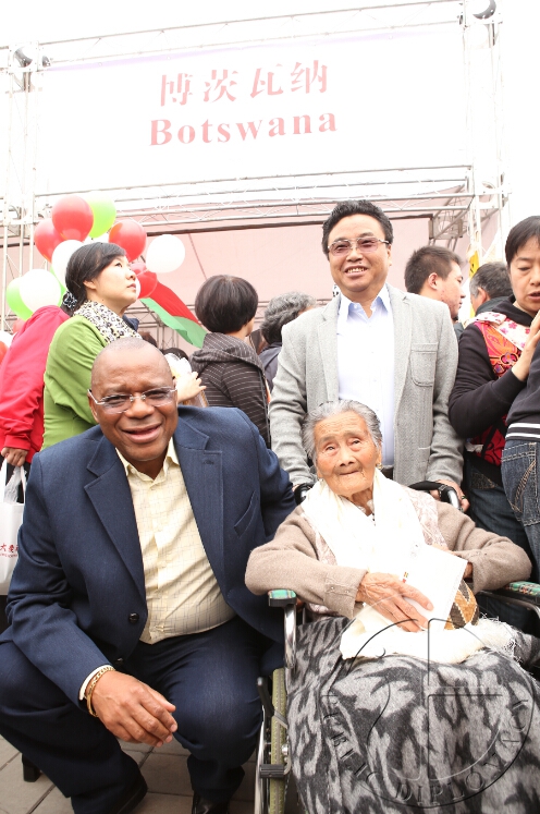 博茨瓦纳驻华大使(前排左一)与马会长(后排右一)及其母亲(前排右一)亲切合影