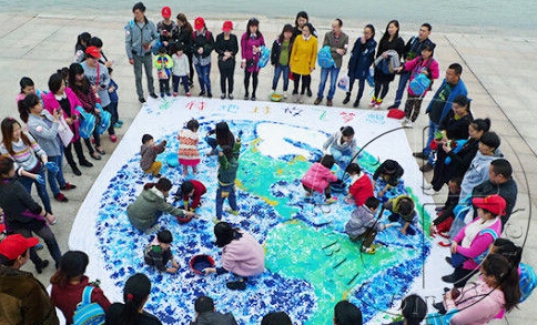 纪念世界地球日 长沙100名幼儿手绘地球