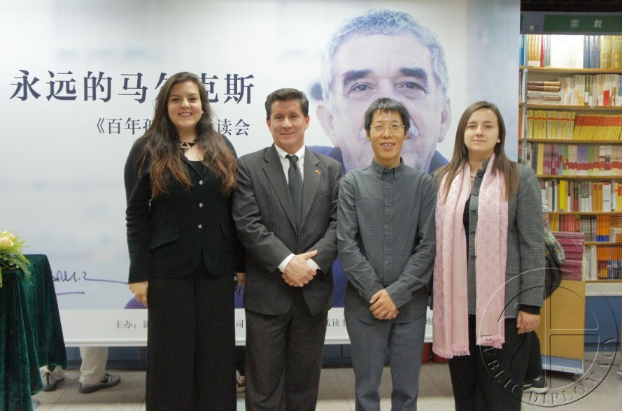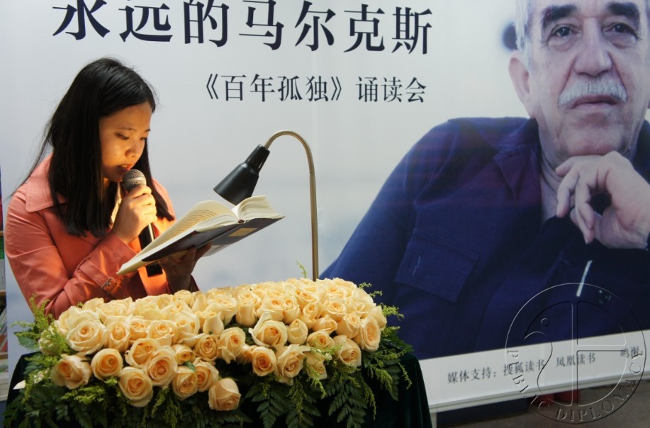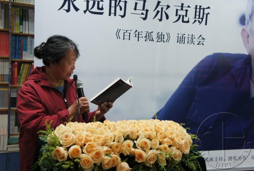《百年孤独》诵读会由哥伦比亚驻华公使卢秋先生领读,他朗读的是这部小说的西文版第一段。在诵读之前,卢秋先生面带微笑向众人展示这部继《堂·吉诃德》后再度震惊世界的西班牙语文学经典,称“这是一部伟大的作品,也是一部爱的作品”,他非常高兴中国读者“通过本书了解拉丁美洲,了解哥伦比亚”,并且表示“永远的马尔克斯将一直在中国,也在哥伦比亚”。