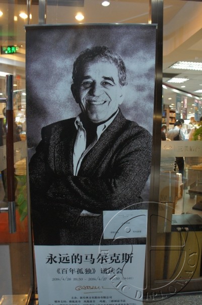 马尔克斯微笑着立于三联书店门口,与“24小时书店”的灯牌一同照亮了夜读者的心灵