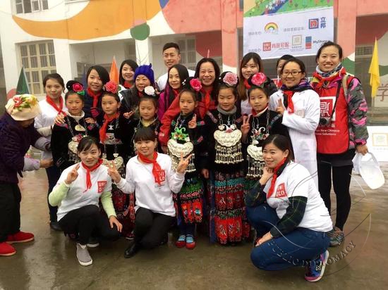 活动当天,贵州白碧小学的孩子们身着色彩鲜艳的民族服饰跳起苗族歌舞,志愿者们也表演了精心准备的节目,载歌载舞共迎新年。“为爱上色”快乐美术课上,在志愿者美术老师的引导下,同学们在优衣库素色T恤上作画,画笔下色彩缤纷充满童趣的图案将孩子天马行空的想象力和艺术天赋崭露无遗。迅销中国(优衣库)的“服适人生,让爱远传”项目为孩子及村民送上了贴心的御寒冬衣,新年穿新衣,孩子们稚嫩的脸上绽放出灿烂的笑容。尚品宅配“爱尚计划·爱上学”爱心助学公益项目为立邦快乐美术教室配备了崭新的课桌椅,令孩子们尽情挥洒美术热情的空间焕然一新。鼎瀚新中医“医心为爱”项目为孩子带去了一堂实用的健康知识课,提供预防疾病的卫教知识;专业的医疗支持团队亦在午休时间,前往部分困难家庭进行了义诊和慰问,送上一份温情和新年祝福。