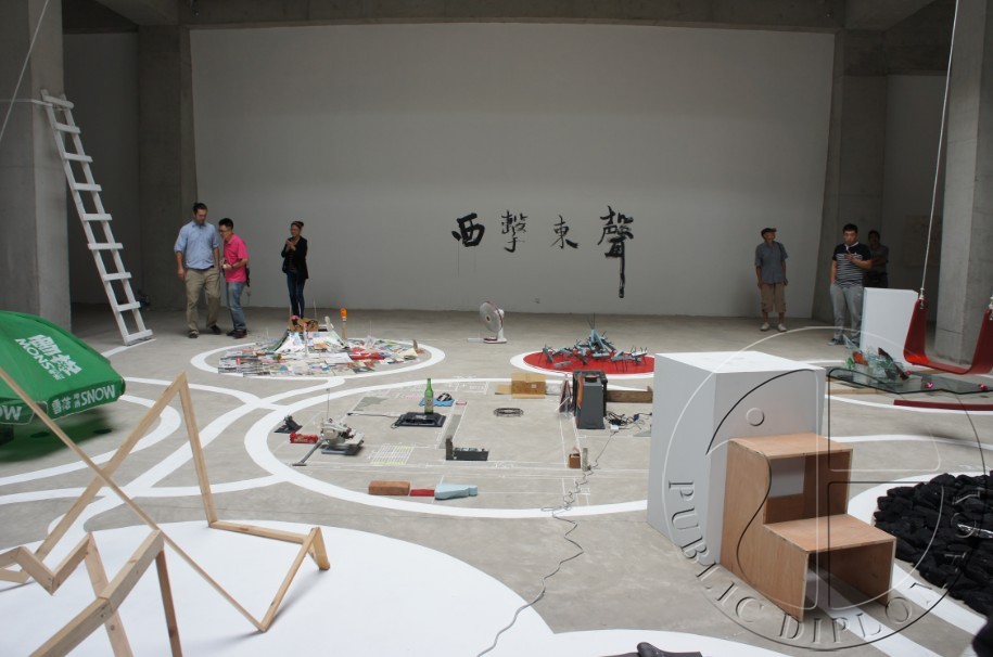 据悉此次《声东击西》大型展览将持续到10月19日,届时音乐舞蹈学院作曲系的学生们将参加最后一周的展览,他们也将为宽阔的展览空间准备一系列空间声音的声学干预。伴随着舞台美术系的服装表演,他们将会在闭幕晚会上演奏音乐曲目。作为辅助节目,学生们还将介绍他们的声音装置作品“门”。(文/公共外交网记者胡雅君)