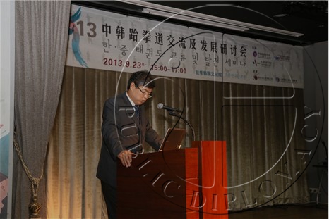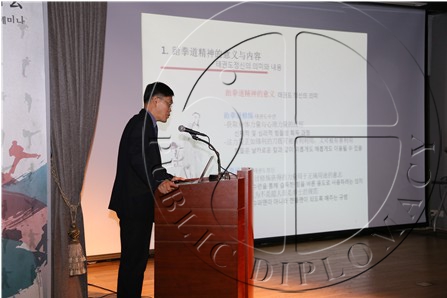 【公共外交网讯】9月23日下午,由中国跆拳道协会、跆拳道振兴财团、驻华韩国文化院和大韩民国驻青岛总领事馆联合主办的中韩跆拳道交流及发展研讨会在北京驻华韩国文化院举行。