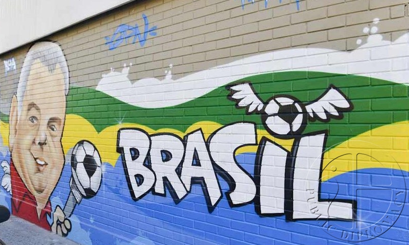 巴西很多街头,都有各种奇思妙想、荒诞夸张的涂鸦带给路人视觉冲击,成为街头艺术的一个组成部份。其中,足球文化涂鸦是涂鸦者最爱的创作内容,和其它类型的涂鸦不同,足球涂鸦一般比较写实,而且以正能量为主打。贝贝托的摇篮舞、罗纳尔多的阿福头等都成为艺术家们创作的灵感源泉。巴西政府非常支持并出资鼓励民间艺术家在马路边的墙上进行艺术创作。有位领着不菲政府津贴的大师叫蒂奥·赛纳,大胆、新锐的创作风格使他成为近年在国际街头涂鸦界很有名望的人物,据说经他涂鸦的房子马上可以升值数倍。对于足球涂鸦,巴西普通公民最能接受,也比较受欢迎。记者在里约一条街道看到了满街的涂鸦,咋一看上去,很像重庆的黄桷坪,让记者感到一丝亲切。不过,和黄桷坪不同的是,这里的涂鸦似乎更加夸张。