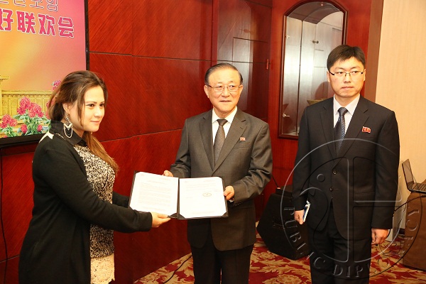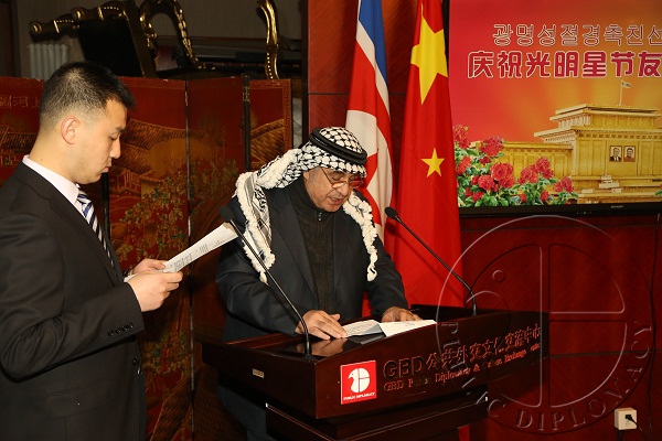 朝鲜驻华大使池在龙发表致辞,他表示,朝鲜领袖金正恩完全继承了金正日元帅的思想、领导、人格、风貌和气魄,相信在他的领导下,必将实现在这块土地上建设社会主义强盛国家的美好愿望。他还高度评价公共外交文化交流中心和阿拉伯信息中心通过信息交流和文化活动为加强同朝鲜和世界各国发展友好合作关系所作出的努力。并祝愿公共外交中心与阿拉伯信息中心在加强国际合作与交流,建设和平稳定的世界的事业中取得更大成就。