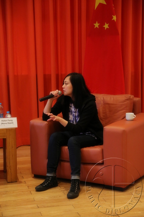 与Chico Sonido进行对话的是中国歌手冯海宁,她被誉为北京摇滚音乐天后,出生在北京,曾经留学加拿大。2004年组建“自游”地下原创摇滚音乐,受到当地人的热烈欢迎,之后又在中国国际广播电台担任节目主持人。现在她组建了一个新的乐队,名为Nova Heart,该乐队受到了世界各地音乐界的邀请。