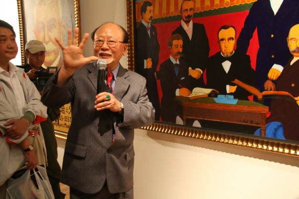 陈博士于1969年在巴黎建立“五次元世界文化观”并衍生出在绘画表现上的“新意象派”(Neo-Iconography)。他那自由、多元、综合,解构而又重构,同时艺以载道、艺以叙事的后现代(新禧代)艺术风格使他能天马行空地将一个主题做多角度,多层次,多风貌的展现,所以1986年他有自由女神百幅庆典连作,1990年时他有“后梵高系列”100件作品参与梵高逝世百年纪念,向早年引导他走向艺术之路的大师致敬。