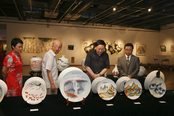 中国文联副主席在马振轩董事长陪同下参观孟伟哉瓷器作品
