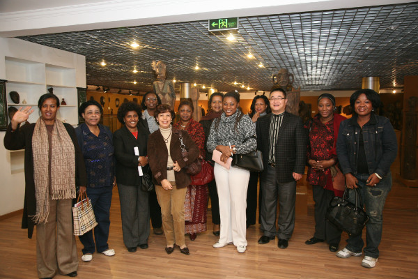 2008年11月7日,十位非洲大使夫人来访桥艺术中心并参观非洲木雕展。