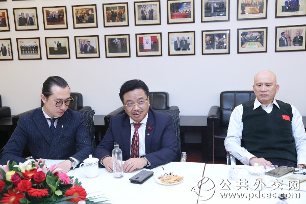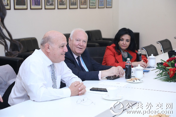 【公共外交网讯】2019年4月25日,联合国文明联盟高级代表莫拉蒂诺斯访问公共外交文化交流中心。马振轩会长会见并宴请来宾。双方就推动公共外交和不同国家之间文明的互鉴进行深入交流。世界公共外交组织创始人兼任地中海区域负责人、突尼斯前驻华大使巴斯里等参加活动。