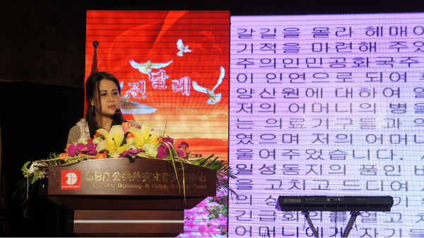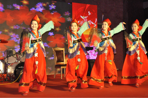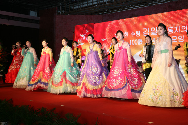 晚会中,由朝鲜艺术家表演的朝鲜民族器乐独奏、扇子舞、《卖花连曲》、《思乡曲》等朝鲜节目,以及中国艺术家表演的蒙古独舞《鸿雁》、马头琴演奏、《好日子》等中国节目,赢得嘉宾们阵阵热烈的掌声,优美的旋律让现场嘉宾如醉如痴。纪念晚会在《金日成将军之歌》的乐曲声中划上了圆满的句号。