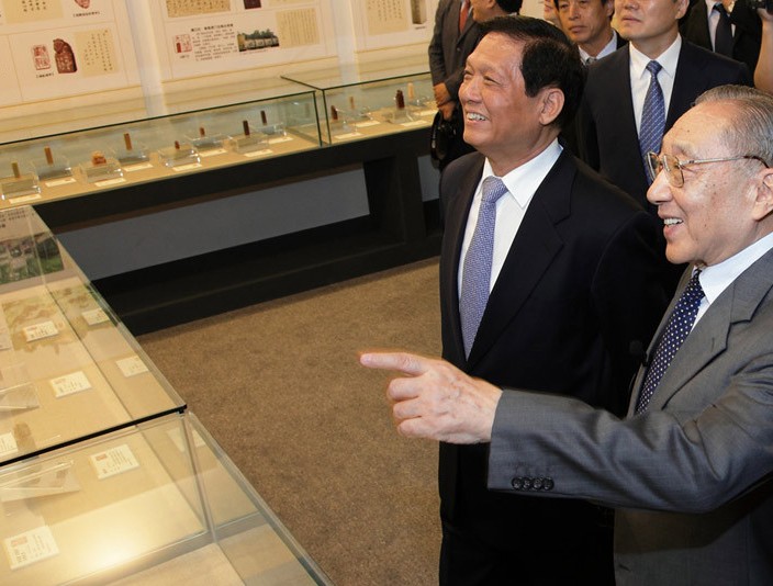 开幕式上,李岚清向首都博物馆赠送了他精心创作的“北京精神”五方印章、“首博”印章,并将他为鲁迅、齐白石、田汉、梅兰芳、侯宝林、刘炽等31位艺术大师创作的素描作品捐献给大师家属及纪念馆代表。