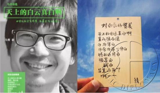乌青的诗如何?《对白云的赞美》最为典型:“天上的白云真白啊/真的,很白很白/非常白/非常非常十分白/特别白特白/极其白/贼白/简直白死了/啊—”该诗歌也被称为“废话体”。