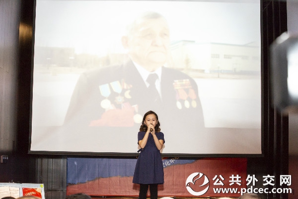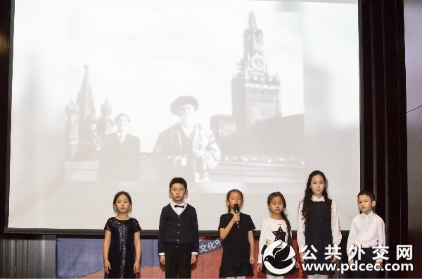 哈萨克斯坦驻华使馆工作人员的子女朗诵贾巴耶夫的诗《列宁格勒人,我的孩子们》