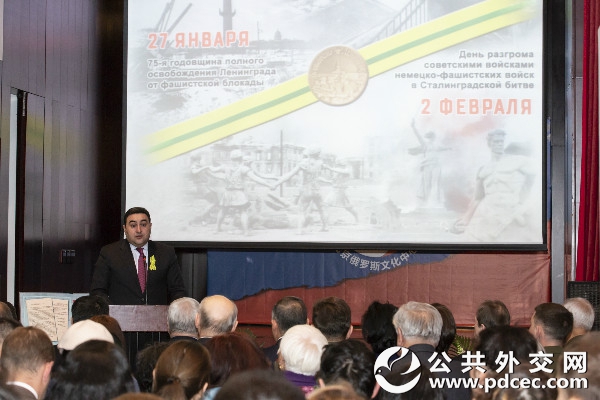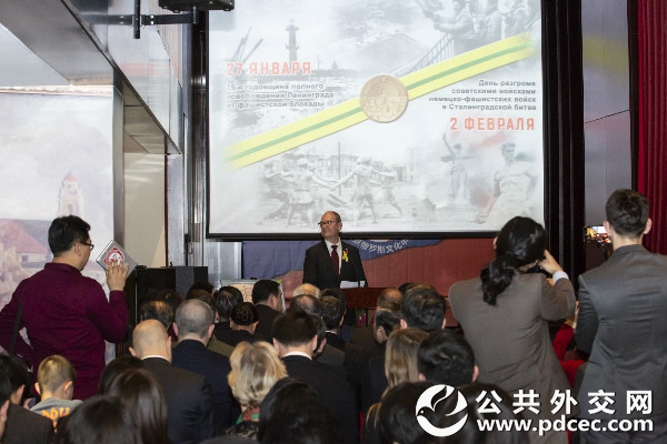 【公共外交网讯】2019年1月28日,“列宁格勒完全解除法西斯封锁75周年暨苏联红军在斯大林格勒战役中击溃德国法西斯军队日”纪念晚会于北京俄罗斯文化中心举行。本次活动由俄罗斯国际人文合作署驻华代表处和圣彼得堡市对外联络委员会联合主办,活动得到俄罗斯、塔吉克斯坦、哈萨克斯坦、阿塞拜疆、亚美尼亚、白罗斯、吉尔吉斯等国驻华使馆和上海合作组织秘书处的支持和参与。