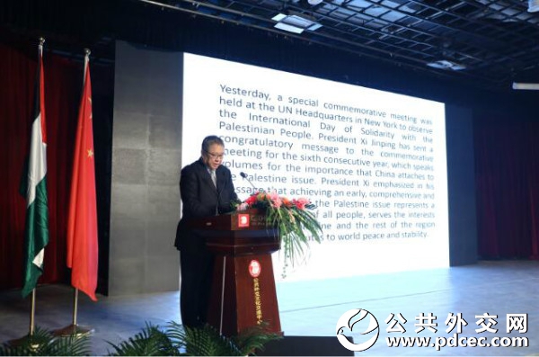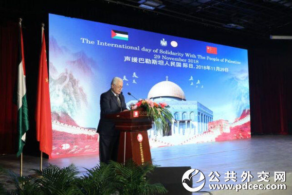 【公共外交网讯】2018年11月29日,在声援巴勒斯坦人民国际日暨中国巴勒斯坦建交30周年到来之际,巴勒斯坦驻华使馆、阿盟驻华代表处和中国人民对外友好协会、公共外交文化交流中心在“永久的‘阿拉伯之家’”举办纪念活动。