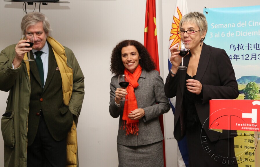 【公共外交网讯】3日晚,由乌拉圭驻华大使馆和北京塞万提斯学院合作举办的2014年乌拉圭电影周在京拉开帷幕。当天有玻利维亚、哥伦比亚、厄瓜多尔、墨西哥等拉丁美洲驻华大使和突尼斯驻华大使,众多拉美外交使团成员,中国前驻拉美国家外交官,西语国家侨民及西班牙语学习者出席开幕活动并观影。