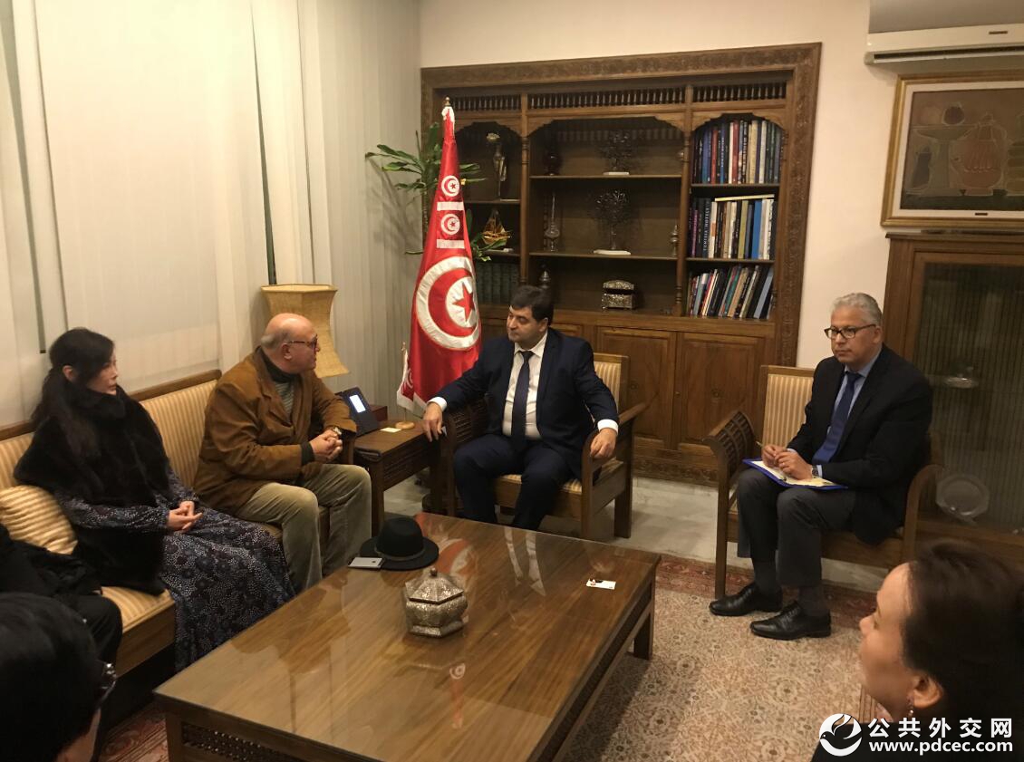 中国公共外交文化交流中心终身荣誉主席、世界公共外交组织副主席兼地中海区域负责人、中突合作委员会主席、突尼斯前驻华大使巴斯里出席会见。代表团主要领导车夫、夏令生等参加会见。