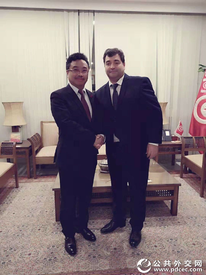 【公共外交网(突尼斯市)讯】当地时间2018年12月4日,正在突尼斯进行友好访问的中国公共外交代表团会见突尼斯旅游部长雷尼·查贝尔斯(Rene Trabelsi)。双方就推进民间交往和旅游合作进行了友好交流。