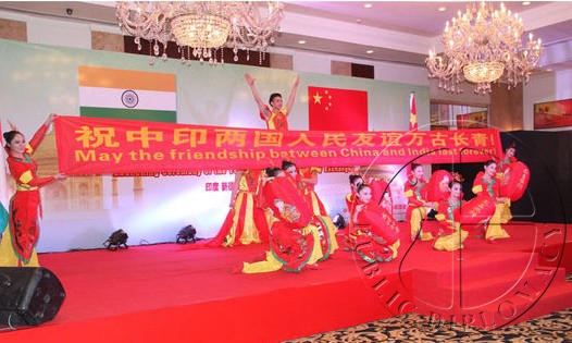 印度社会各界人士近600人出席活动,来自中国广西杂技团的演员为两国嘉宾表演了精彩的节目,赢得现场阵阵掌声。(中新网)