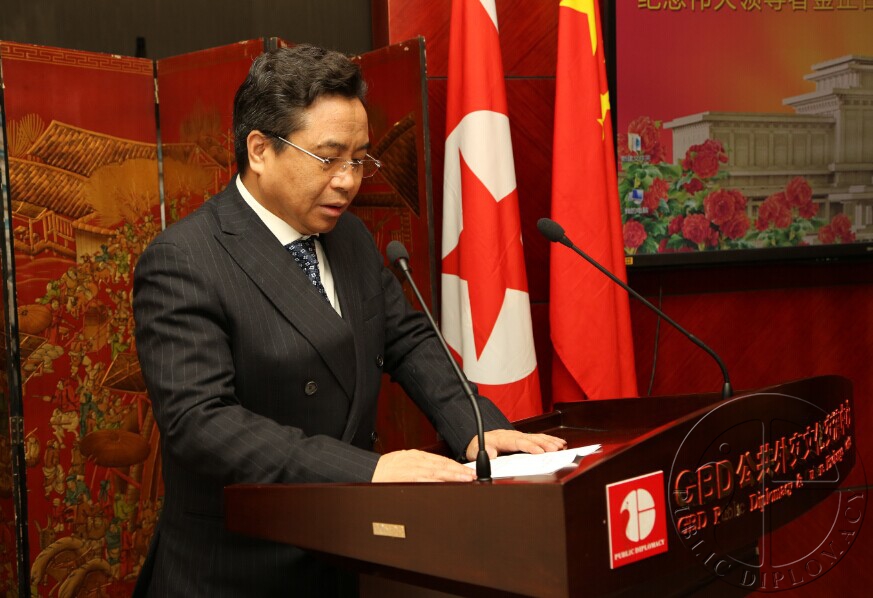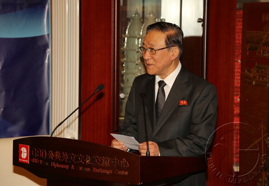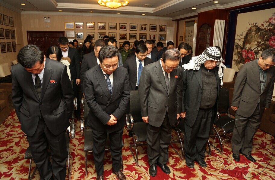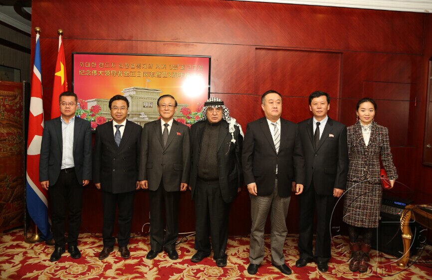 【公共外交网讯】在朝鲜前最高领导人金正日逝世三周年之际,为缅怀这位朝鲜军民领袖,12月16日,纪念金正日逝世三周年座谈会在北京公共外交文化交流中心举行。朝鲜民主主义人民共和国驻华大使池在龙率朝鲜驻华外交使团出席本次纪念活动,共同出席的还有公共外交文化交流中心执行会长马振轩、阿拉伯信息交流中心主任穆斯塔法·萨法日尼博士、 宝船全球投资有限公司董事长马俊、北京恩比投资有限公司副董事长吴永泽等。