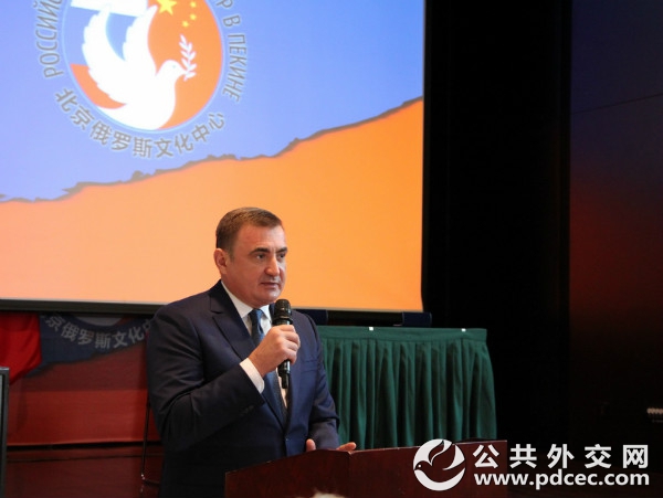 【公共外交网讯】2019年10月10日,俄罗斯图拉州经贸、农业、文化旅游投资潜力推介会在北京俄罗斯文化中心举行。俄罗斯驻华大使杰尼索夫、中国政府欧亚事务特别代表、中国前驻俄罗斯大使李辉和俄罗斯图拉州州长久明分别在推介会上致辞。