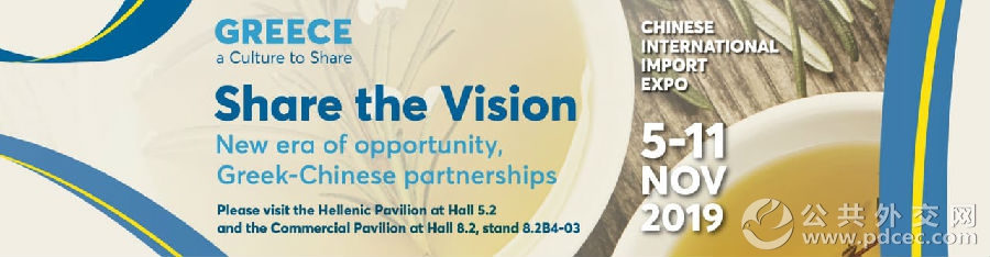 文化启迪、商业创新:希腊作为主宾国之一参加2019年中国国际进口博览会感到无上的光荣。2019年中国国际进口博览会希腊馆特别以“希腊,共享的文化”为主题,为中国工商界和观众提供有收益的体验。自古以来,希腊就是一个开放的社会,思想活跃,互动对话是交流沟通的基础。今天,希腊开启了开放的新时代,发扬互动交流的悠久传统,承诺通过为希中商业伙伴关系和文化交流创造新的商机。希腊馆表达了我国的“共享精神”,愿意与中国在经济战略领域进行全面合作。
