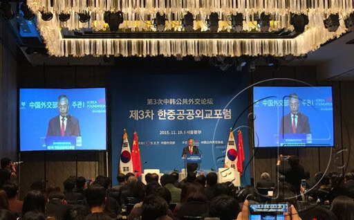 2015年11月19日,由中韩两国外交部联合主办、中国公共外交协会和韩国国际交流财团共同承办的第三届中韩公共论坛在韩国首尔举行。中国外交部长王毅、韩国外交部长尹炳世向论坛致贺信。中国公共外交协会副会长吕凤鼎、韩国国际交流财团金光根理事长发表致辞,中国驻韩国大使邱国洪、韩国外交部公共外交担当大使崔盛国出席论坛。本届论坛以“韩中两国人民携手开辟美好未来”为主题,来自中韩两国政府、智库、高校、媒体、企业及公众代表等共200余人出席并参与讨论。