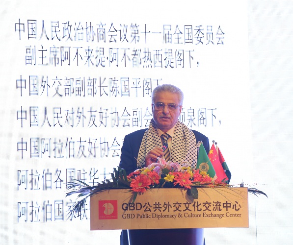 2012年11月30日晚,中国人民对外友好协会、中国阿拉伯友好协会在GBD公共外交文化交流中心(桥艺术中心)举行招待会,纪念“声援巴勒斯坦人民国际日”,并庆祝“中阿友好日”。本次招待会由GBD公共外交文化交流中心承办、阿拉伯信息中心协办。全国政协副主席阿不来提·阿不都热西提、外交部副部长程国平、全国友协副会长井顿泉、中联部、文化部、团中央、全国妇联等相关单位领导及中阿友协理事,巴勒斯坦驻华大使艾哈迈德·拉马丹及使馆全体外交官、阿拉伯国家及其他外国驻华使节和代办、阿拉伯联盟驻华代表、巴勒斯坦在京侨民、留学生和中阿媒体代表等约300人出席了招待会。井顿泉,阿拉伯国家驻华使团代理团长、阿曼驻华大使阿卜杜拉·萨阿迪、巴勒斯坦驻华大使艾哈迈德·拉马丹及阿盟驻京代表处副主任艾哈迈德·穆斯塔法分别致辞。