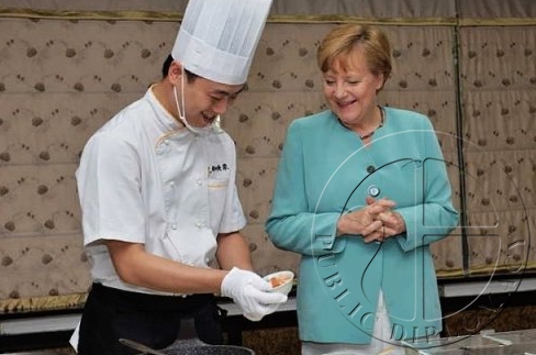 2014年7月6日,德国总理默克尔在逛完成都的一个农贸市场后来到一家川菜馆,跟川菜大厨学了一招—宫保鸡丁的制作。这次访华,也是默克尔担任德国总理以来第七次访华。