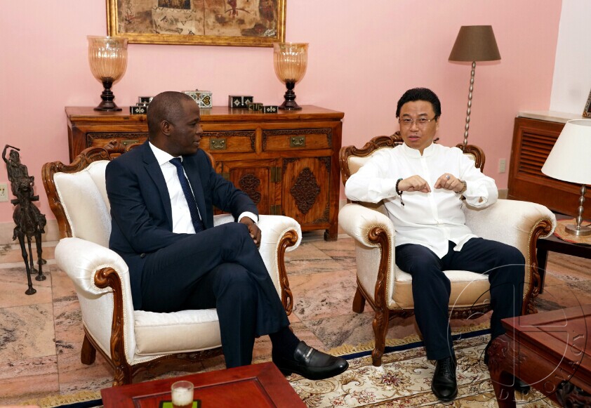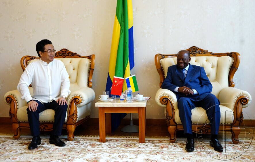 马振轩会长(左)与加蓬驻华大使让·罗贝尔·古隆加纳(右)共叙友谊