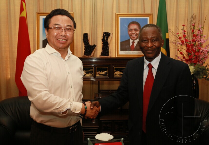 马振轩会长(左)与坦桑尼亚驻华大使菲利普·桑卡·马尔莫(右)就相关合作事宜达成共识