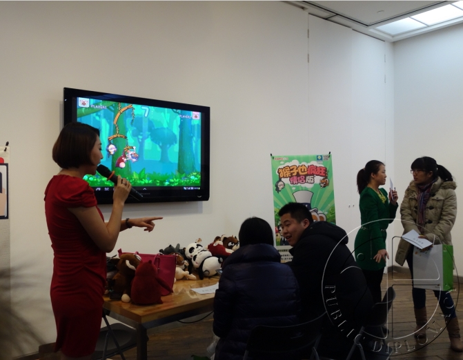 主办方还在会场外设置了智能手机游戏演示体验区域,并现场组织了一场即兴比赛,不少玩家都赢得了可爱的游戏小玩偶。(文/公共外交网记者刘伟伟)
