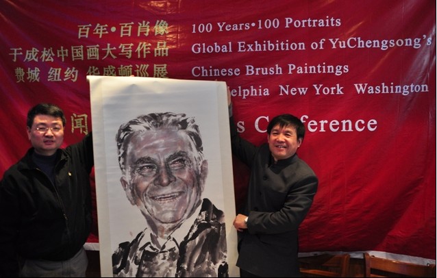 由世界华人华侨精英联合会举办的该会美术分会会长、中国 北京GBD文化交流中心首席画家于成松创作的“百年百肖像”中国画大写作品百米长卷,2011年11月19日下午,隆重展现在美国费城独立广场,引起轰动。众多在独立广场参观的各国游客看到百米百肖像画卷,直呼“wonderful”“太棒了”。