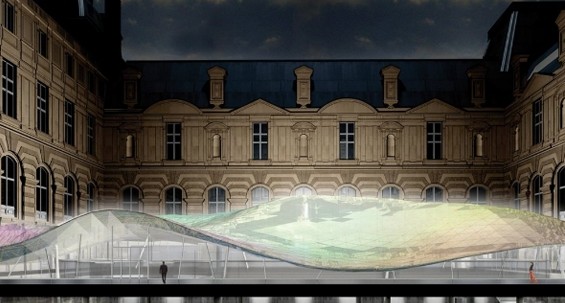 1985年,当贝聿铭(I.M.Pei)提交了位于卢浮宫广场上的70英尺高的玻璃金字塔方案时,全世界的怀疑主义者们莫不惊恐。这一设计被认为是对现代玻璃-钢筋建筑工程结构的赞美,对于一些人来说,贝聿铭的设计是对卢浮宫新经典景观建筑的明目张胆的冒犯。但是自从这一项目在1989年完成之后,曾经被变成凄凉的停车点的卢浮宫庭院,转眼间成为了最受追捧的聚会地点和旅行者趋之若鹜的经典,平均每年都要吸引超过850万的游客数量。自从贝聿铭提出针对卢浮宫的方案之后,兴许是世界对金字塔批判性接受的遗嘱,削弱了对卢浮宫的主体建筑的干预的批评,这次,由MarioBellini和RudyRicciotti设计的重达150吨的波浪起伏的玻璃屋顶将漂浮在新的伊斯兰艺术展厅之上。