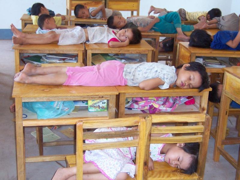 马教授建议,为了孩子的健康,学校最好能给孩子提供午休的床,从而代替孩子睡课桌的传统。(南方日报)