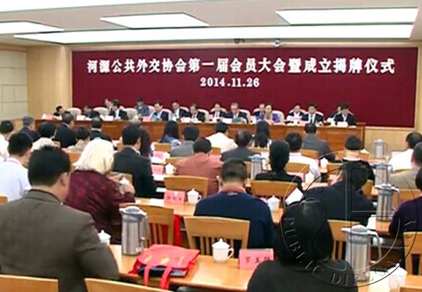 11月26日上午,河源公共外交协会正式成立。广东公共外交协会会长汤炳权,省侨办主任、广东公共外交协会副会长吴锐成到会祝贺并为协会揭牌。市长彭建文致辞,市政协主席龚佐林主持成立仪式。