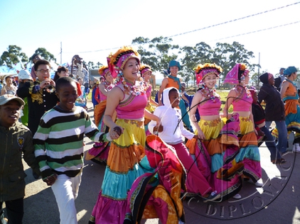 此次美丽天津艺术团献演南非是中国连续第4年派艺术团参加南非国家艺术节,中国艺术团的演出已成为艺术节期间最受关注的活动之一。7月12日至13日,美丽天津艺术团参加了在格雷厄姆斯敦城郊和市区举行的两场彩装巡游,吸引了大批观众,很多人一直跟随艺术团的队伍行走,舍不得离开。7月14日,在南非学校艺术节开幕的当天,艺术团还为南非的数千名中学生代表献上了一场精彩的演出。
