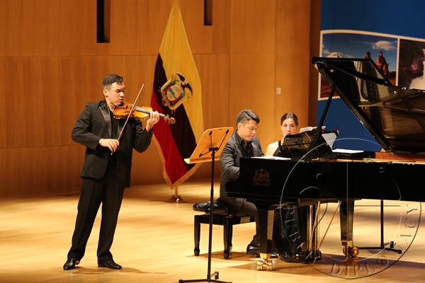 【公共外交网讯】值厄瓜多尔共和国206周年国庆之际,8月11日晚,厄瓜多尔驻华使馆在北京国家图书馆艺术中心举办钢琴小提琴二重奏音乐会。厄瓜多尔驻华大使何塞·博尔哈,拉美及加勒比国家驻华使节,中国前驻拉美外交官及各界友好人士等近八百人出席。