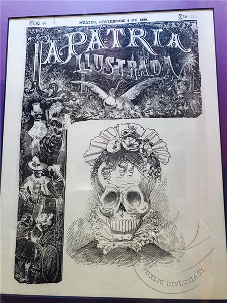 当晚,墨西哥著名插画家何塞·瓜达卢佩·波萨达系列作品的平面艺术展也在使馆开幕。据贝尔纳尔大使的介绍,在当今墨西哥,波萨达的名字已经和亡灵节密不可分,他被称为“骷髅之父”,起源于他的一幅骷髅头骨版画,他的很多作品均和骷髅头相关,他的绘画和诗篇多暗示死亡,加上幽默和讽刺的内容,描绘了墨西哥波菲利亚托时代生活的日常场景。