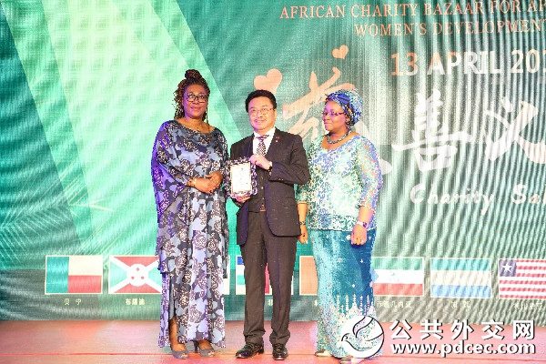 非洲大使夫人协会主席向公共外交文化交流中心会长马振轩颁发奖牌