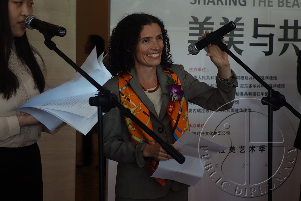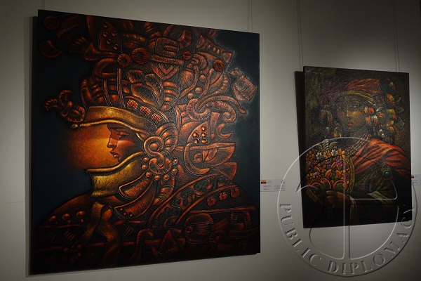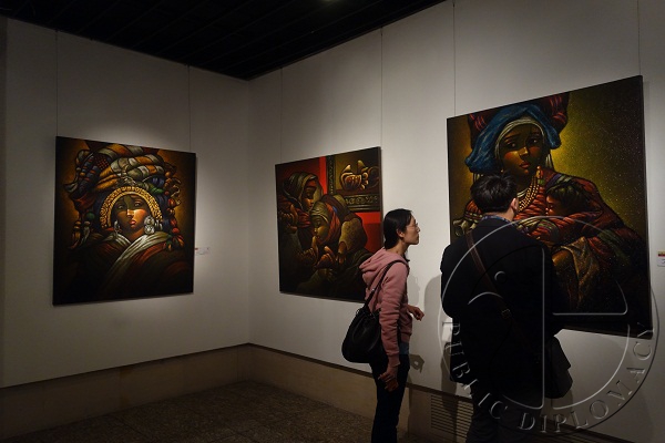 艺术展上,秘鲁展出了由旅居中国20年的秘鲁画家达尼洛·奥雅尔赛创作的“中秘合璧”作品;墨西哥展区则以诺贝尔文学奖获得者帕斯的黑白影像配合他诗作的精选章节,纪念这位将老子、庄子哲学介绍到西班牙语世界的东方学家;厄瓜多尔则展出了画家豪尔赫·佩鲁加奇的“安第斯女人——太阳神女祭司”系列作品,此次展览将向公众开放至5月21日。(文/公共外交网辛晓娇)
